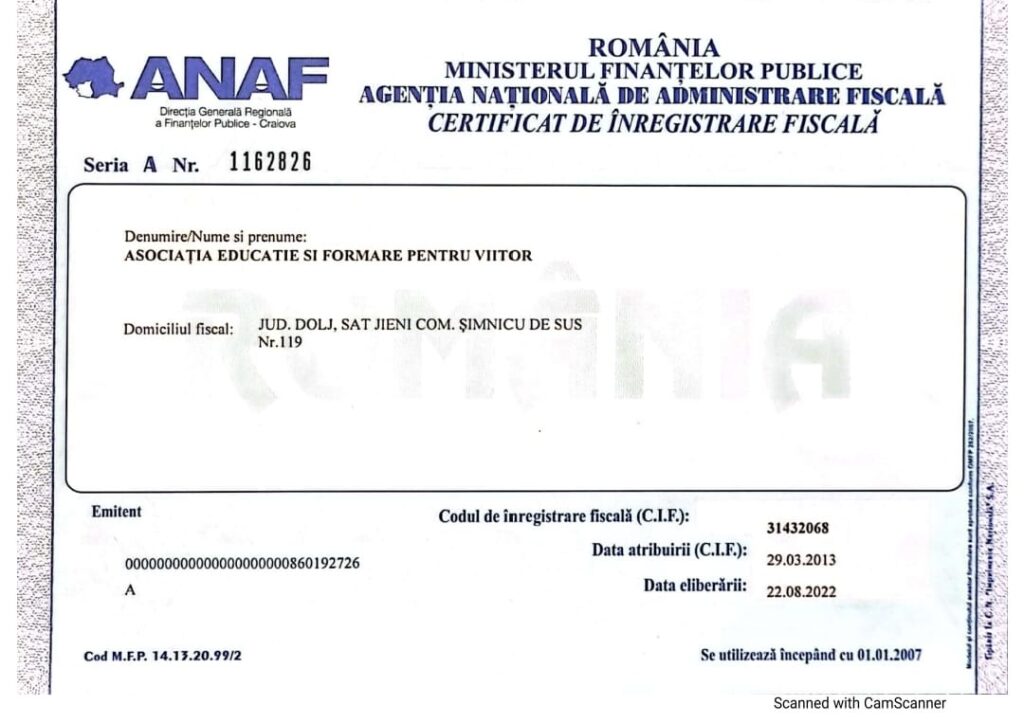 Asociația Educație și Formare Pentru Viitor este persoană juridică română de drept privat, fară scop patrimonial, non-guvernamentală, non-profit, independentă, constituită prin libera voinţă a membrilor fondatori și a membrilor asociați.